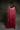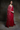 This majestic ensemble features a deep ruby red draped gown, designed with a flowing silhouette that exudes grandeur. It's adorned with an attached cape that gracefully sweeps over the shoulders and down the back, creating a regal effect. Both the cape and the bustier-style bodice are intricately embellished with dazzling silver and white beadwork and delicate floral motifs, adding a touch of sparkle and opulence. The deep scoop back of the cape adds a hint of allure.