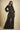 This ensemble features a full-sleeved, long black tunic paired with wide-legged trousers, both adorned with metallic contour-style embroidery and floral sequin motifs. The tunic has a boat neckline and flared sleeves, with embroidery running throughout the silhouette. The matching trousers mirror the same pattern, creating a coordinated and fluid look.