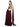 Given the bold color and embellished top, select accessories that enhance without overpowering. Silver, rose gold, or gunmetal-toned earrings would be ideal, perhaps in a statement stud or small drop design. Avoid necklaces to keep the focus on the intricate top. For hair, a sleek high ponytail, a half-up style, or soft waves pulled back from the face would beautifully showcase the neckline and top. Makeup can feature a luminous base, defined eyes (perhaps a subtle smokey eye or winged liner), and a rich berry or deep nude lip to complement the wine hue. Complete the look with metallic heels in silver, rose gold, or a deep coordinating shade to maintain a cohesive and sophisticated appearance.