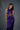 The rich, royal purple color of this stunning gown radiates sophistication and beauty. The shoulders and décolletage are exquisitely framed by the halter neckline. The elaborately embroidered corset-style bodice, which is tightened at the waist to create a figure-flattering effect, is a noteworthy feature. The skirt has a subtle front slit for ease of movement and a touch of sexiness, and it falls gracefully into soft folds that flow to the floor with a knotted detail at the hip. The gown is ideal for an evening event because of the lustrous fabric, which enhances its opulent feel.