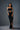 o complement this elegant and modern outfit, opt for accessories that enhance its sophisticated appeal without competing with the structured and draped elements. Silver or dark metallic earrings, such as sleek drop earrings or geometric studs, would be ideal. Given the detailed top, it's best to skip a necklace. A sophisticated cocktail ring or a delicate bracelet could add a subtle touch of glamour. For hair, a sleek low bun, a polished half-updo, or elegant, soft waves would maintain the ensemble's sophisticated aesthetic. A dramatic eye makeup look with a more subdued lip, or a classic glamorous makeup style, will enhance the ensemble. Finish with black or metallic high heels.