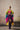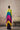 HOT PINK BLOUSE AND PURPLE SKIRT WITHOMBRE SHRUG