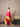 RED SKIRT WITH BLOUSE WITH RED AND GOLD PEACH OMBRE SHRUG