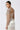This exquisite ensemble showcases a sophisticated blend of modern design and intricate detailing. The top features a sheer, nude-toned corset-style bodice with a plunging V-neckline, beautifully contrasted with full-length sleeves and a structured shoulder line, all adorned with delicate, multi-toned floral and leafy beadwork and embellishments. This intricate work extends gracefully across the neckline and shoulders, adding a luxurious shimmer. The skirt, in a soft, elegant off-white, drapes elegantly with a knotted detail at the front, creating a fluid and flattering silhouette that falls gracefully to the floor.