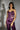 This purple set includes a sleeveless corset top with slim straps, structured boning, and tonal sequin embroidery. It is paired with high-waisted straight-fit pants in a matching shade, creating a sleek and cohesive silhouette. The corset’s detailing adds texture and structure to the overall look.