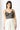 Pair with silver or black minimalist hoop earrings or stud earrings. Opt for black or metallic heeled sandals to add height. A sleek, low bun or straight, open hair will complement the top. Keep makeup focused on a defined eye and a nude lip. Avoid necklaces to keep the neckline clean.