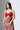 This eye-catching gown has contrasting stripes and a bold, dynamic design in a vivid red color. With delicate spaghetti straps, a cutout detail at the midriff, and a fitted, subtly twisted design, the bodice adds a modern edge. The skirt's distinctive diagonal stripe pattern in red and off-white or silver creates an eye-catching visual flow as it falls elegantly. The fabric's draping creates a flowing, elegant silhouette that makes it a striking statement piece ideal for a glitzy occasion.