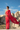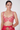 This vibrant ensemble features a stunning red pre-draped saree, crafted from a flowing, lightweight fabric. The saree is elegantly adorned with intricate floral embroidery in delicate off-white and gold tones, adding a touch of traditional charm. It is perfectly paired with a matching sleeveless bustier-style blouse, also embellished with coordinated floral motifs and subtle sparkle, completing this graceful and festive look.