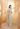 This elegant outfit features a pre-draped saree in a sophisticated light silver or champagne hue, offering a modern twist on traditional Indian attire. The saree is adorned with intricate vertical sequin embellishments that cascade down the drape, creating a shimmering and elongating effect. It is paired with a matching blouse, featuring a flattering V-neckline and short sleeves, also intricately embellished with sequins. The ensemble is cinched at the waist with a matching embellished belt, enhancing the silhouette and adding a polished finish to the look.