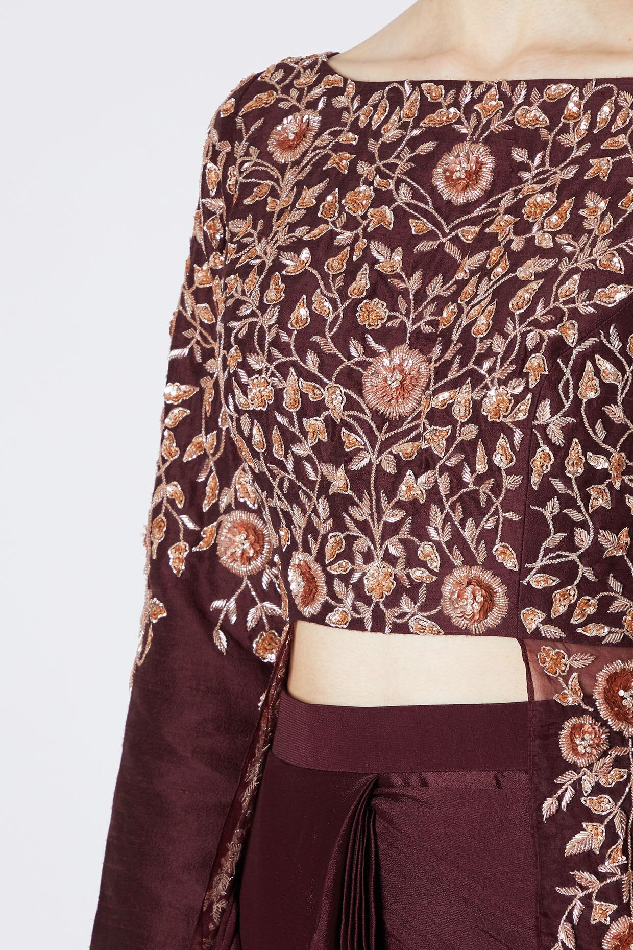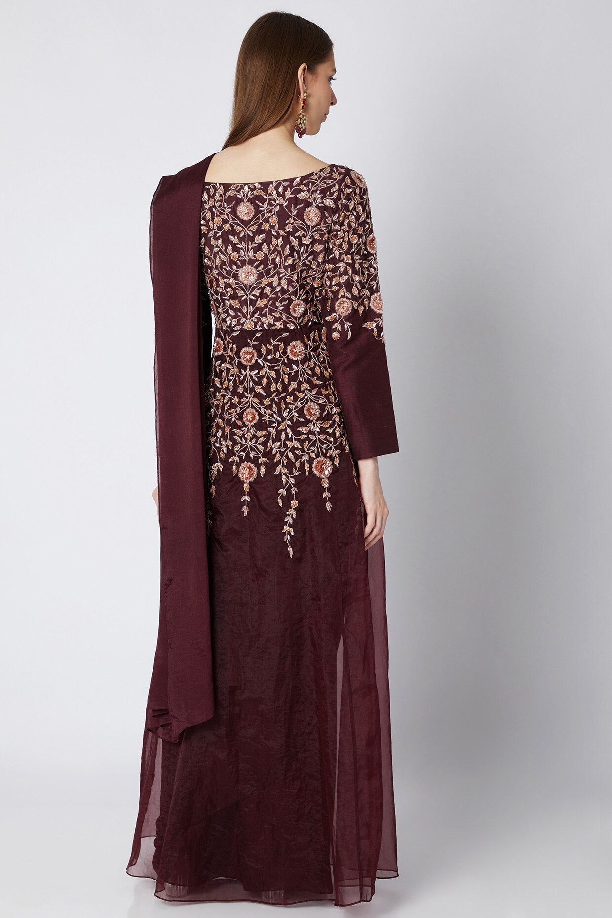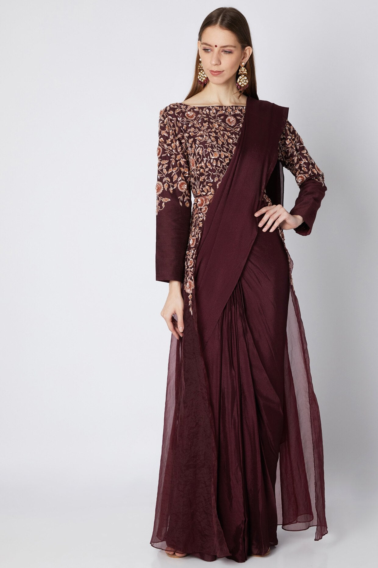 Burgundy Organza Saree Set