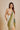 Introducing a Multi-Color Ombré Draped Saree, with its soft color transitions and delicate shimmer. This stunning pre-draped saree transitions from a white at the top, through soft peach, to a muted olive green, and finally into a deep forest green at the bottom, creating a ombré effect.