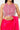 This fuchsia pink saree is crafted from a lightweight, flowing fabric that drapes with comfort. The saree has delicate beaded borders, adding a sparkle to its edges. It is paired with a matching high-neck sleeveless blouse, creating a textured and glamorous surface. The overall look is bold and festive.
