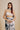 This contemporary outfit includes a long scarf, a coordinated skirt, and a soft pink bralette all embellished with a striking tie-dye pattern in black and white. The bralette accentuates the décolletage and gives off a sleek, fitted appearance. The skirt adds movement and a pleasing silhouette with its gathered and draped design. The matching scarf adds to the versatility of the ensemble by being draped elegantly around the shoulders or neck in a variety of styles. This ensemble is a distinctive statement piece because of the tie-dye print, which adds a modern and creative touch.