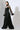 This black jumpsuit features a fitted bodice with a straight neckline and a tapered leg silhouette. It is accentuated by voluminous sheer net sleeves embroidered with delicate tonal sequins, adding texture and contrast. The structured body and dramatic sleeves create a bold, contemporary look.
