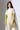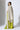 With wide-leg pants, a high neckline, and a sophisticated jumpsuit in a subdued, elegant off-white color, this modern ensemble offers a sleek and comfortable silhouette. A dramatic, floor-length open cape with panels of vivid lime green and the matching off-white creates a striking contrast with the color-blocked design. A hint of subtle glimmer is added by the subtle silver embellishments or detailing that run along the color block seams. This ensemble is ideal for a stylish and eye-catching look because it expertly combines contemporary tailoring with a colorful, artistic flair.