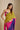 The entire fabric of the saree is adorned with shimmering sequins, forming subtle horizontal stripes. Its sheer texture allows for an elegant drape, showcasing the delicate sparkle and the color transition. This piece is complemented by a fuchsia pink bralette top