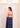 This elegant deep navy blue saree crafted from a flowing, soft fabric,  is adorned with gold embellishments, running vertically across its length. This detailing creates a striped effect. The saree is paired with a hot pink bralette-style blouse, offering a contrast that highlights the neckline and shoulders.