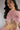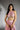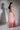 This onion pink set features a ruched, fitted top with tonal sequin embroidery and a straight neckline. It is paired with matching high-waisted ruched pants that mirror the embellished detailing, creating a cohesive and elongated silhouette. The gathered texture adds dimension to the monochrome look.